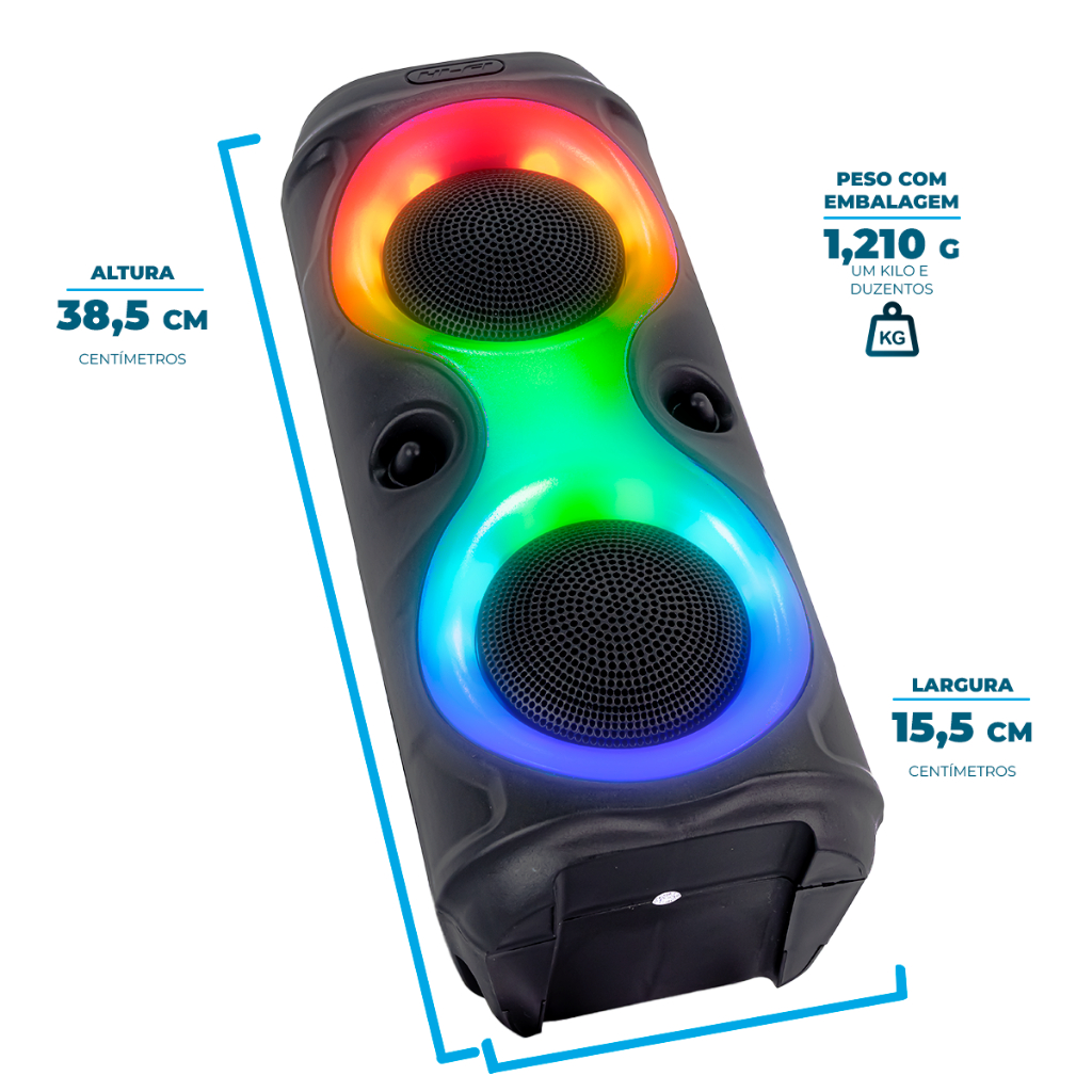 Com alto-falantes de design exclusivo e contorno em LED RGB , ela eleva o nível do seu entretenimento em festas, encontros, jogos ou momentos de lazer.